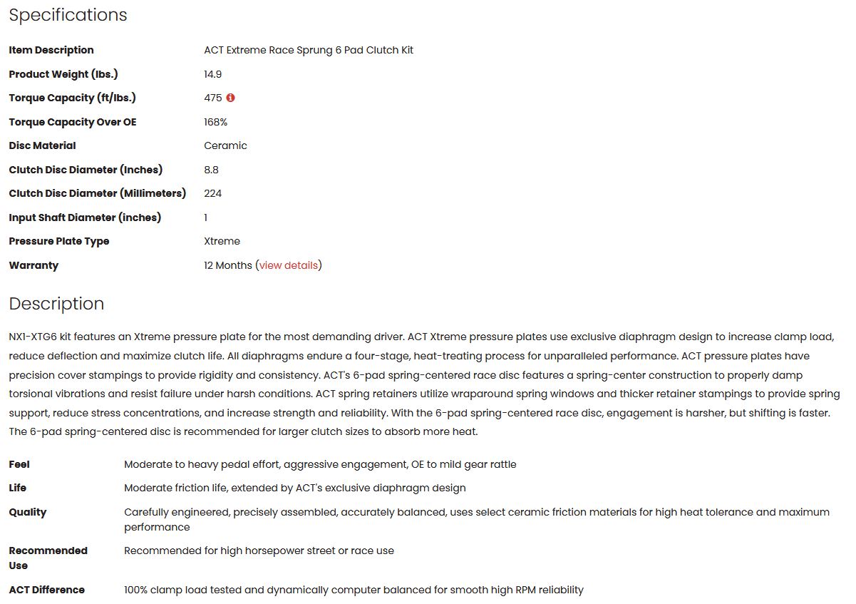 NX4-HDSS kit features ACT's most popular Heavy Duty pressure plate and most popular street disc. ACT Heavy Duty pressure plates use exclusive diaphragm design to increase clamp load, reduce deflection and maximize clutch life. All diaphragms endure a four-stage, heat-treating process for unparalleled performance. ACT pressure plates have precision cover stampings to provide rigidity and consistency. ACT's Performance Street discs feature premium organic materials with high copper content for better heat transfer and steel-backed lining for greater burst strength and durability. These discs have reduced marcel for faster shift action to complement ACT pressure plates, with increased strength and reliability.