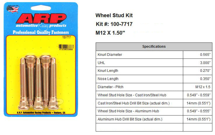 ARP Wheel Studs Nissan 240sx S14 Front - M12x1.50mm
