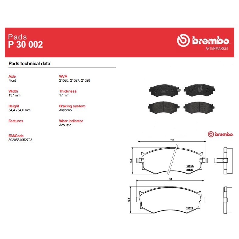 P30002N Prime Ceramic brake pad belongs to Brembo Premium Line