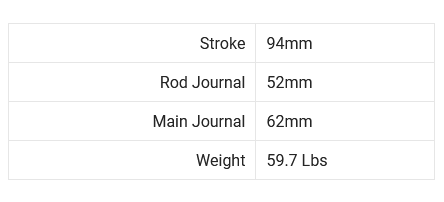 4340 billet. All cranks are stress relieved, shot peened, magna flux inspected and nitrided (multi step heat treatment) for ultimate performance. Fully profiled counterweights are designed for reduced windage through the crankcase creating less oil resistance for better rpm potential.