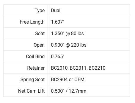 Designed for high rpm, BC valve springs by PAC Racing are wound from only the highest grade, super clean, chrome silicone alloy and feature proprietary processing procedures for consistent pressures.