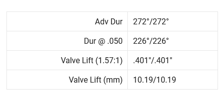 Designed for Rear Wheel Drive applications. Big spec for modified engines. Requires BC0210 valve spring kit and tuning.
