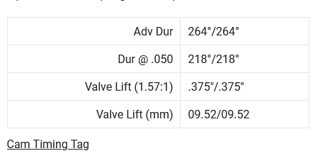 Designed for Rear Wheel Drive applications. Plug and play application. Short duration for nice street manners, slight lope at idle. OEM spring OK.