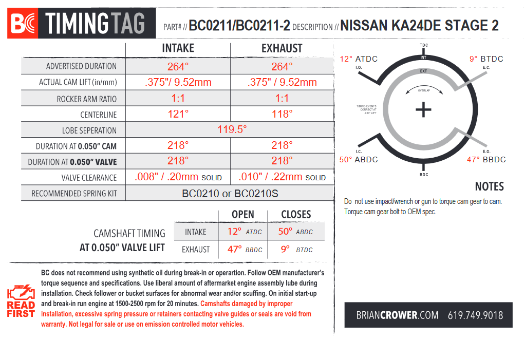 Brian Crower Camshafts Stage 2 - 264/264 Street Drift Spec - KA24DE
