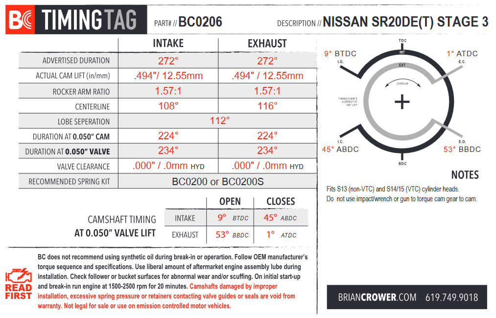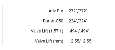 Longer duration profile for added rpm. Intended for fully built engine. Rough idle quality. Tuning and ECU mods recommended. Requires kit BC0200.