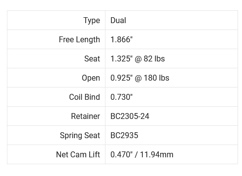 Designed for high rpm, BC valve springs by PAC Racing are wound from only the highest grade, super clean, chrome silicone alloy and feature proprietary processing procedures for consistent pressures.