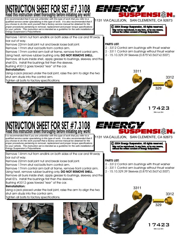 Energy Suspension 240sx S13 Front Control Arm Bushing Set - RED
