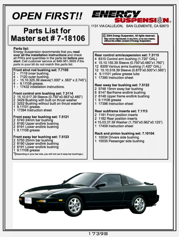 Energy Suspension 240sx S13 - Hyper-Flex Complete Master Bushing Set - RED
