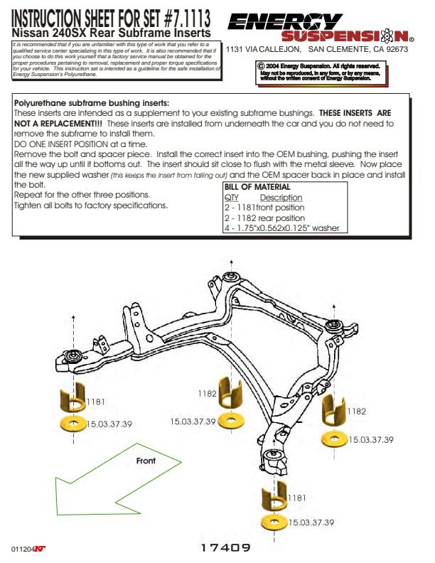Energy Suspension 240sx S13 Rear Subframe Bushing Insert Set (RED)