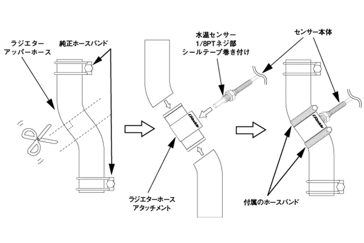 GReddy This is an attachment with a 1/8BSP (JDM 1/8PT) hole for attaching a thermometer or water temperature gauge sensor to the radiator upper hose.
