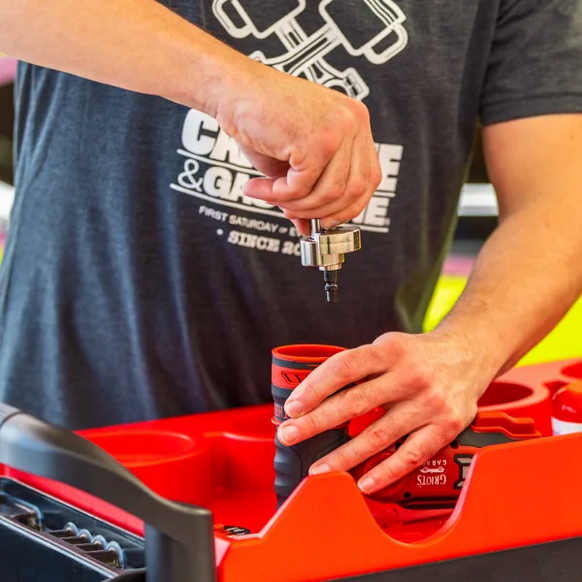 - Output shaft is compatible with a 12mm wrench for easy removal of backing plates