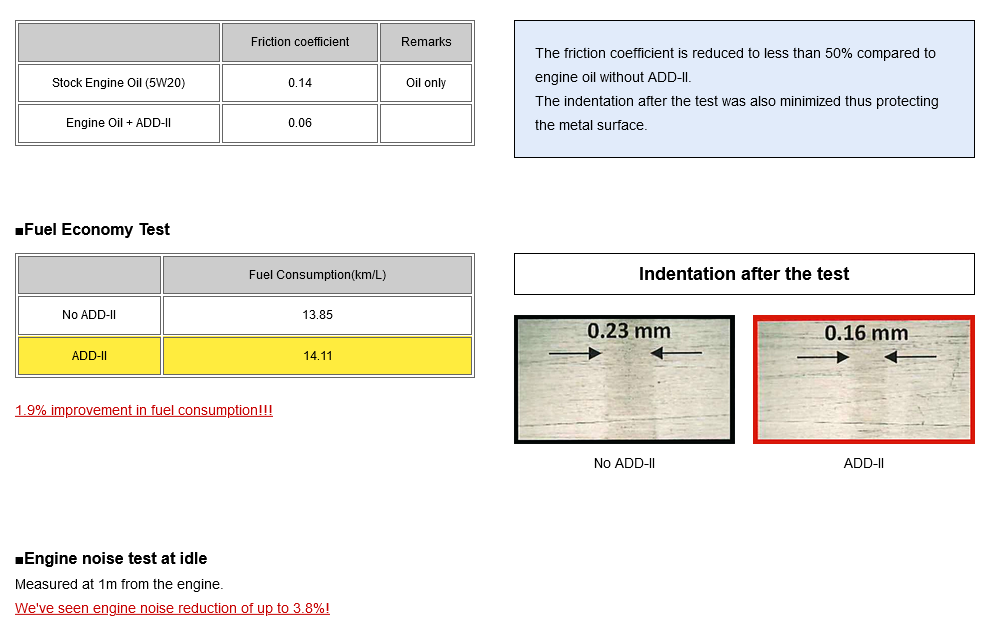 - Stop the engine and add 1 bottle of this product to 3-5 liters of engine oil. (Add 3-6% of ADD-II to engine oil).