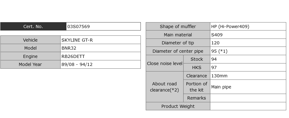 *2: Minimum road clearance between HKS muffler (Any parts included in the kit) and road surface. Therefore, it may be different from actual road clearance of the vehicle.