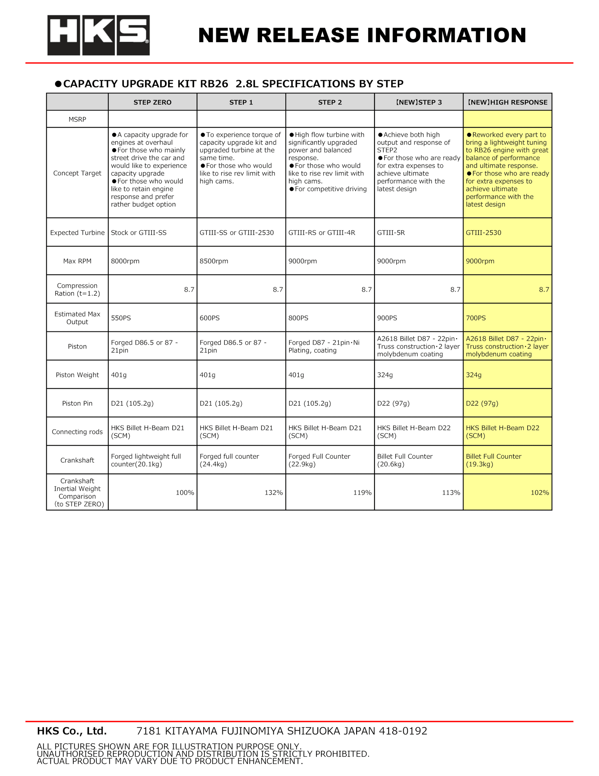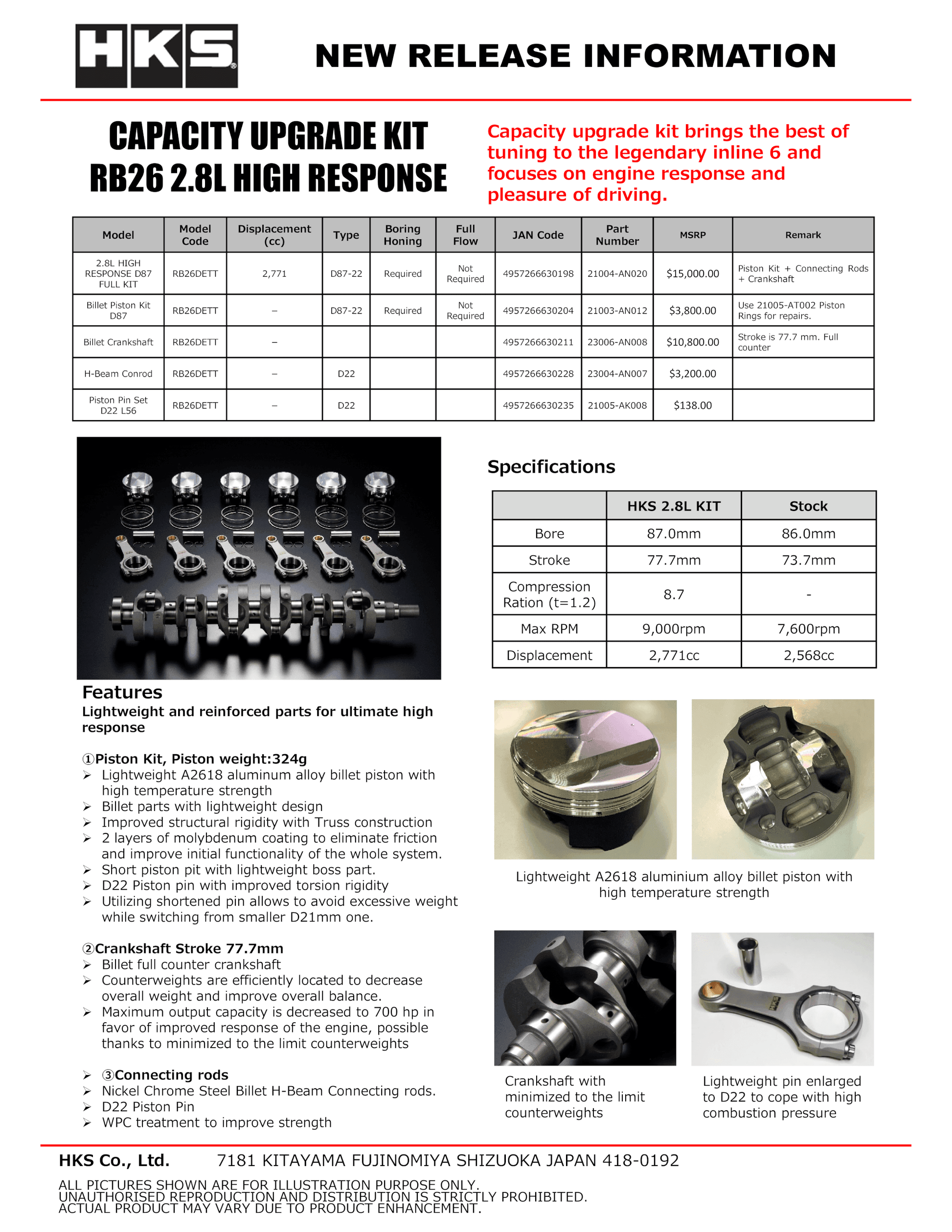 HKS High Response Stroker Kit RB26DETT 2.8L