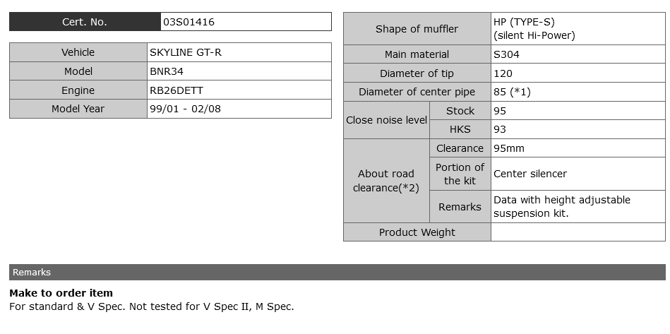 HKS Hi-Power Silent Catback Exhaust Muffler - Skyline GTR R34 RB26