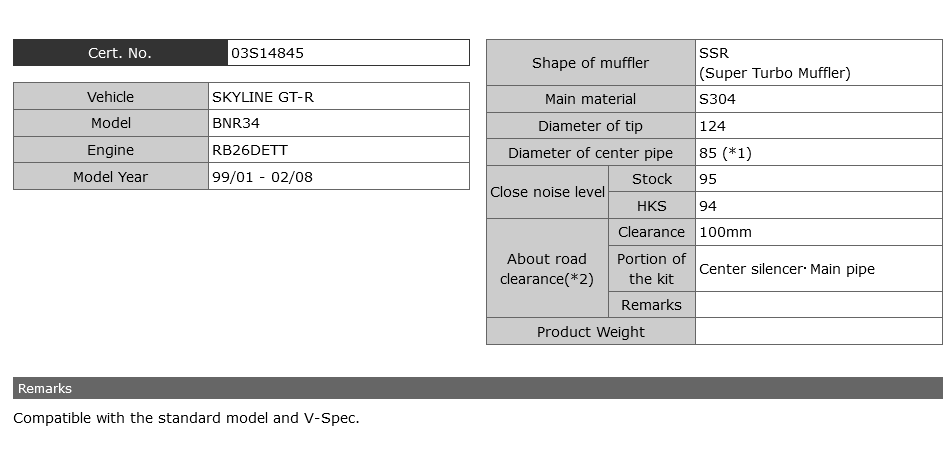 HKS SUPER TURBO MUFFLER BNR34 RB26DETT