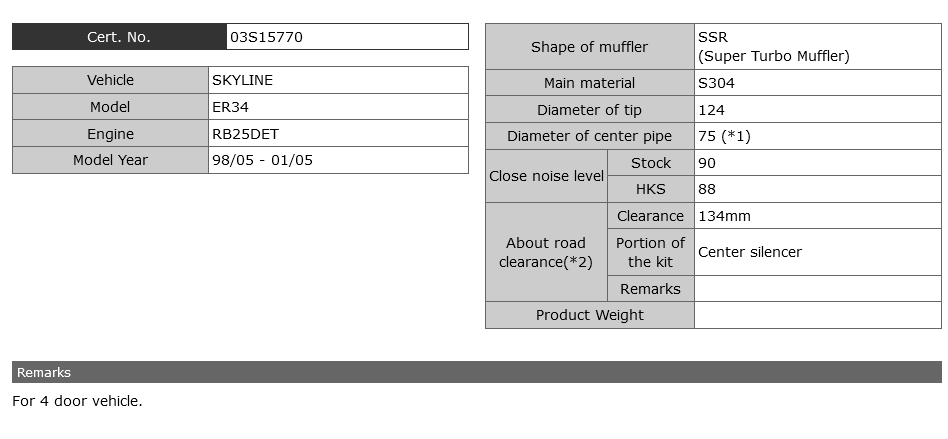 HKS SUPER TURBO MUFFLER ER34(4dr)
