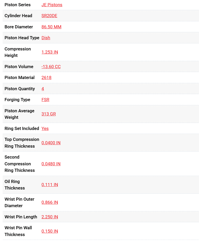 - Includes high-quality wrist pins, locks, and JE Pro Seal premium piston rings