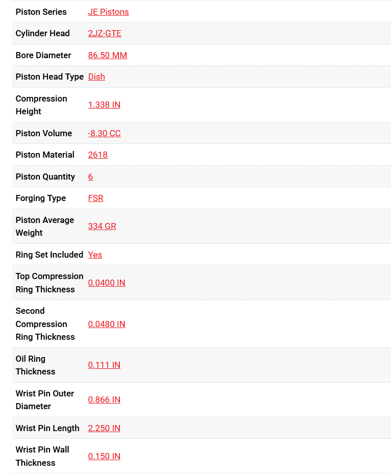 - Includes high-quality wrist pins, locks, and JE Pro Seal premium piston rings