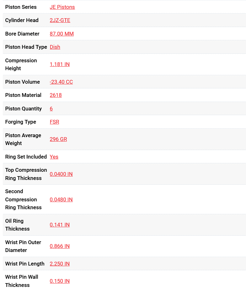- Includes high-quality wrist pins, locks, and JE Pro Seal premium piston rings