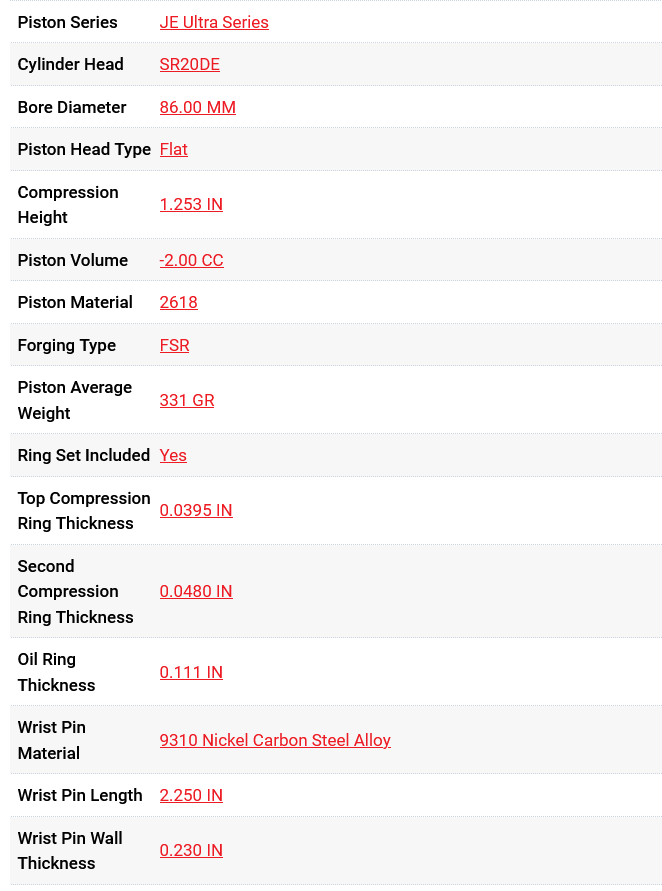 JE Pistons Ultra Series Nissan SR20DET 86mm Bore 10.0:1 CR - Set/4
