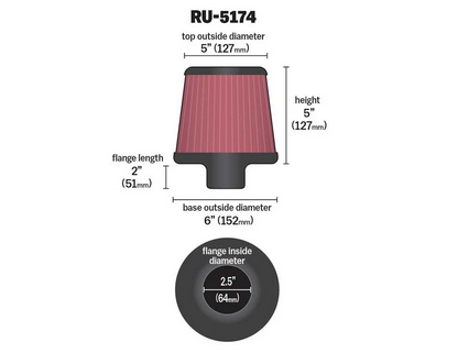 K&N High Flow Universal Air Filter 2.5in Inlet / 6in Base / 5in Top / 5in Height
