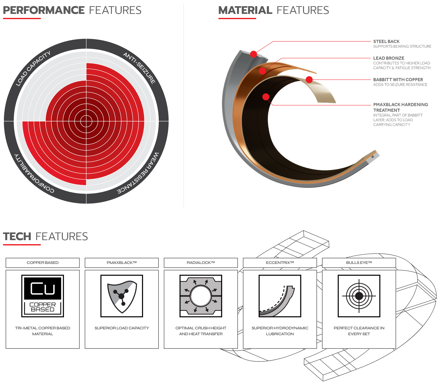 CONNECTING ROD BEARING SET For NISSAN SR20DE 16V; Race bearings, Trimetal pMax Black