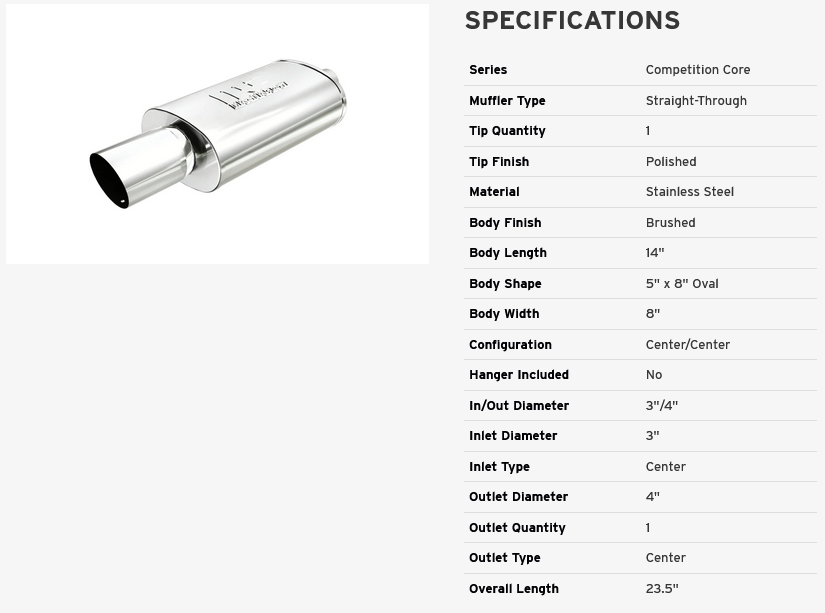 MagnaFlow Competition Exhaust Muffler Chrome RS - 14X5X8 - 3 inlet / 4 Tip