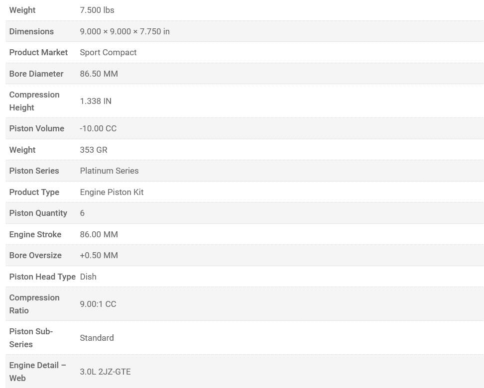 This 6pc piston set fits all 2JZ GTE and 2JZ GE engines.