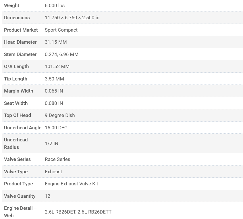 Manley Race Flo Series Nissan RB26DETT Exhaust Valve Kit - 31.15mm