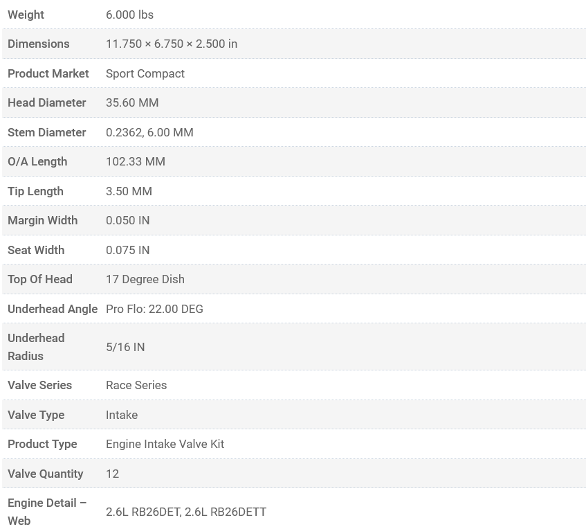 Manley Race Flo Series Nissan RB26DETT Intake Valve Kit - 35.6mm