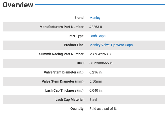 Manley Standard .2165in Stem Valves (5.5mm) Wear Caps (8 pcs)