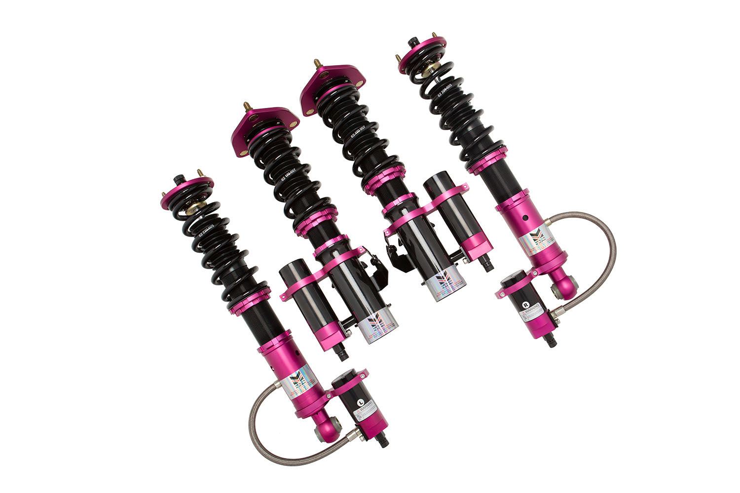 The Megan Racing SPEC-RS Coil-over Damper Kits come with fully adjustable Pillow-Ball upper mount camber plates to easily tune and adjust your camber. This allows you to tune your car for any ride height and still adjust camber to improve handling, vehicle predictability and tire wear, which is a great benefit both on the race-track and on the street