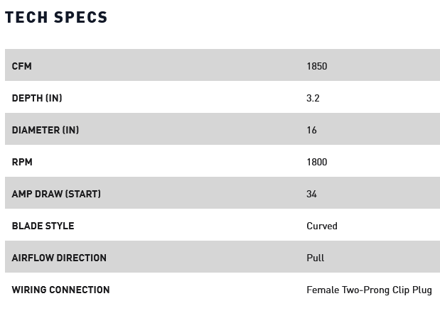 - Compact design with a diameter of 16-in and an overall thickness of only 2.87-in provides increased engine bay space