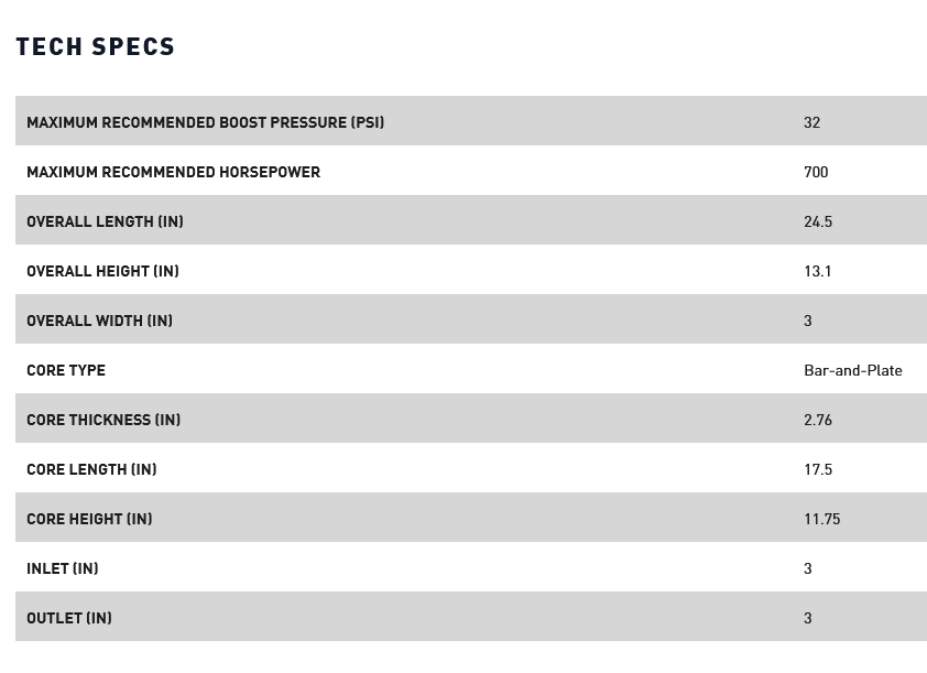 - Robust, one-piece cast aluminum end tanks withstand high boost pressures