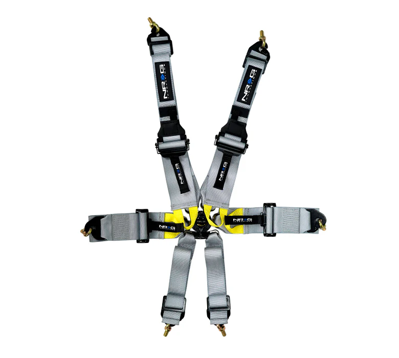 NRG FIA 6 point 3in Seat Belt - Rotary CamLock Harness - Silver