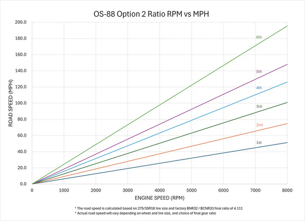 The OS-88 6-Speed Sequential Transmission is specifically designed to maximize RB26’s engine performance potential with tested and optimized gear ratios.