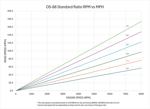 The OS-88 6-Speed Sequential Transmission is specifically designed to maximize RB26’s engine performance potential with tested and optimized gear ratios.