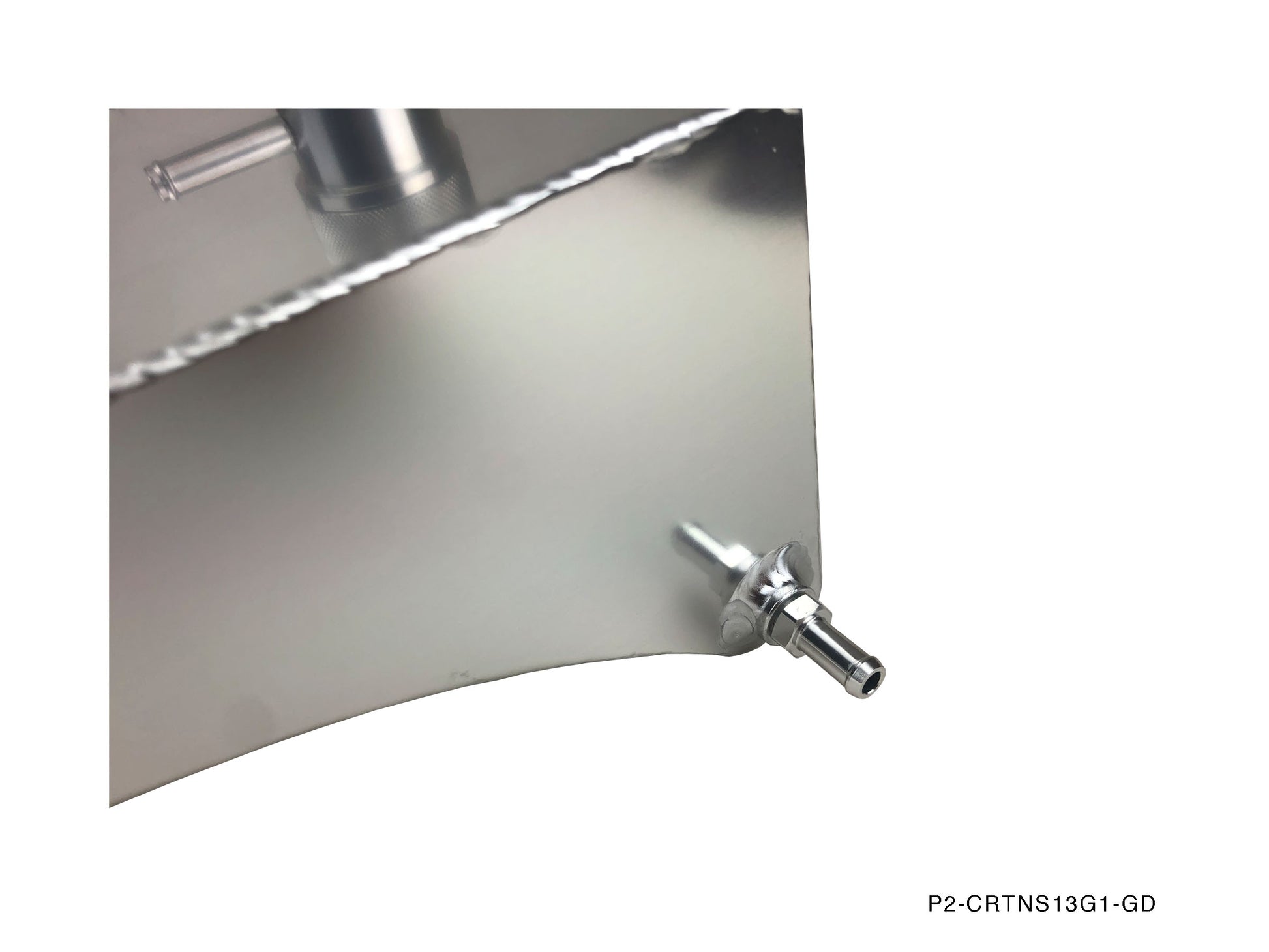 P2M aluminum coolant overflow tanks for S13 240SX is a direct bolt on replacement of your aged factory plastic tank that is often dulled and cracked. Constructed from high grade aluminum material and precision tig welding and anodized clear finish, this tank is one of the best investment one can get for your S13. Comes with signatured P2M name plaque.