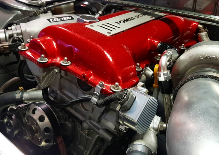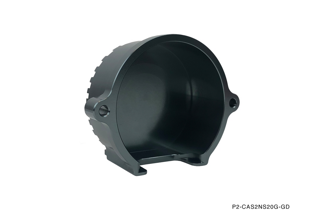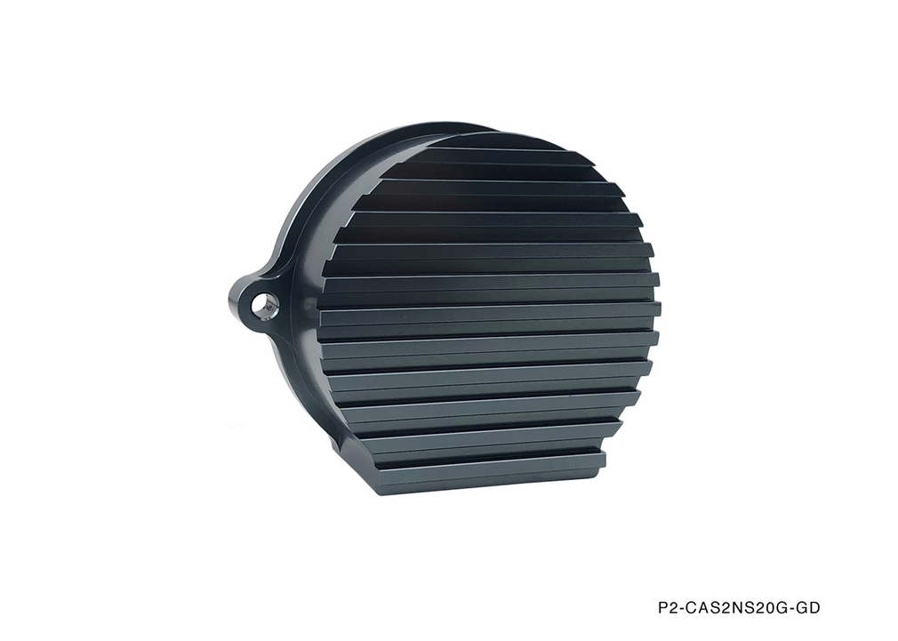 Nissan CAS cover is made from plastic where often times it breaks shipping the motor from Japan.  P2M Version 2 CAS cover is made from CNC T6 aluminum, direct fit replacing the factory CAS cover and improves the aesthetic look of your engine bay.