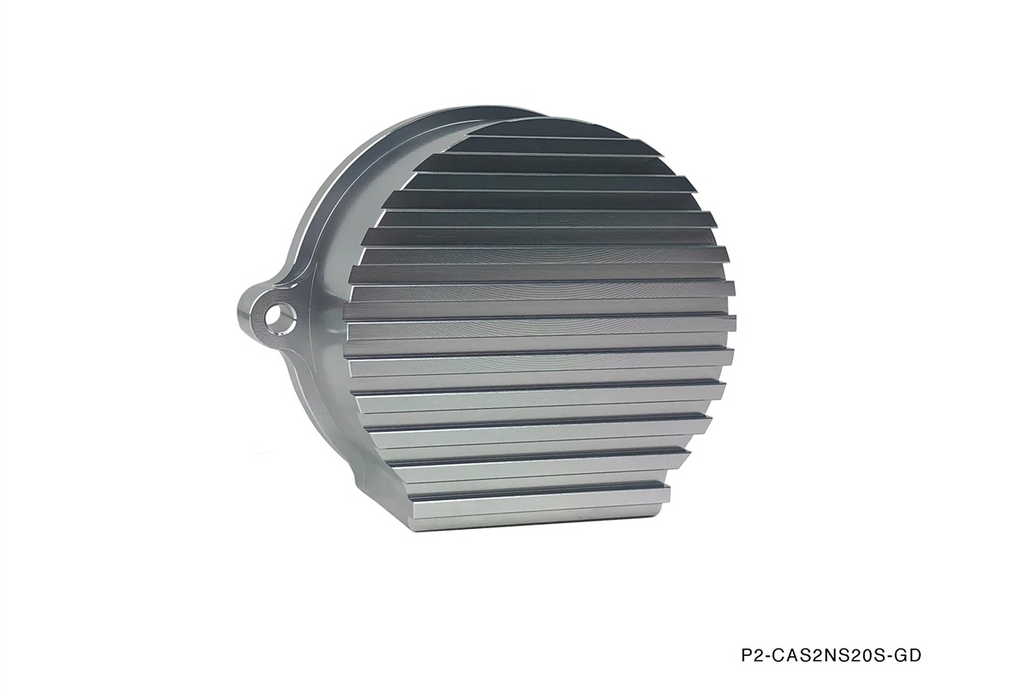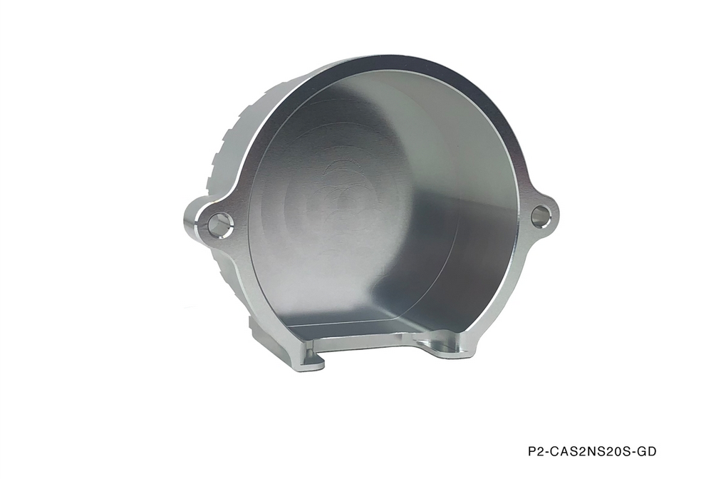 Nissan CAS cover is made from plastic where often times it breaks shipping the motor from Japan.  P2M Version 2 CAS cover is made from CNC T6 aluminum, direct fit replacing the factory CAS cover and improves the aesthetic look of your engine bay.