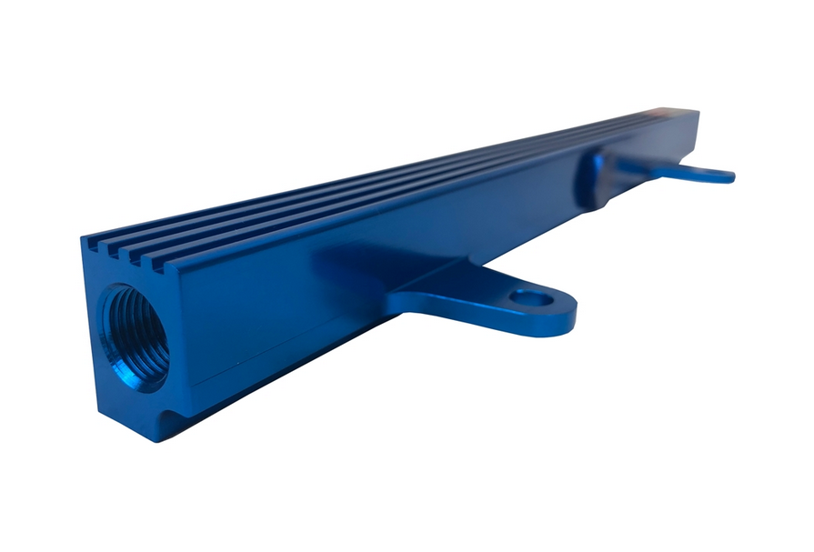 The fuel rail accommodate all 11mm opening top feed injectors (Denso or Injector Dynamics), and is a high volume rail over stock with -6AN outlets.