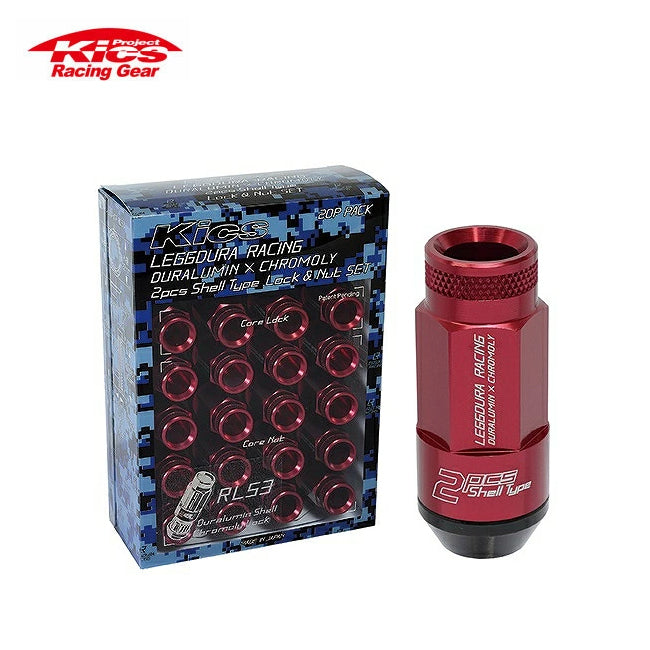 Project Kics Leggdura Racing Shell Type Lug Nut 53mm Open-End Look 16 Pcs + 4 Locks 12X1.25 Red