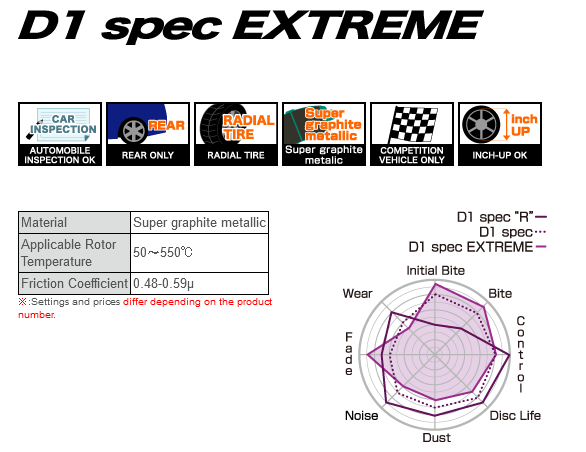 Project Mu D1 SPEC EXTREME Brake Pads - Nissan 240sx S13 S14 S15 - Rear