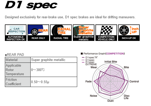 Project Mu D1 SPEC Brake Pads - Nissan 300zx Z32 - Rear