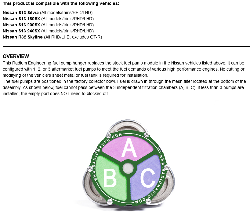 Radium Fuel Sending unit Hanger S13 240sx for Walbro GS342 / AEM 50-1200