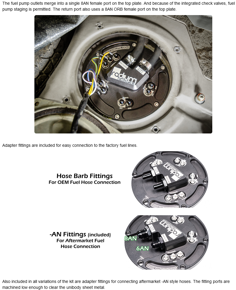 Compatible with Walbro GSS342 or AEM 50-1200/50-1000. Can hold up to three pumps.