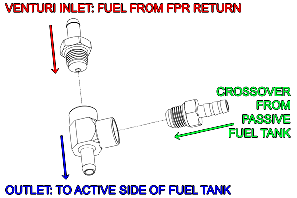 The Radium Engineering Jet Pump is an effective device for drawing fuel from one side of a fuel tank to the other. Fuel flowing through the venturi creates vacuum in the perpendicular port. The effectiveness of this vacuum is demonstrated in the video above.