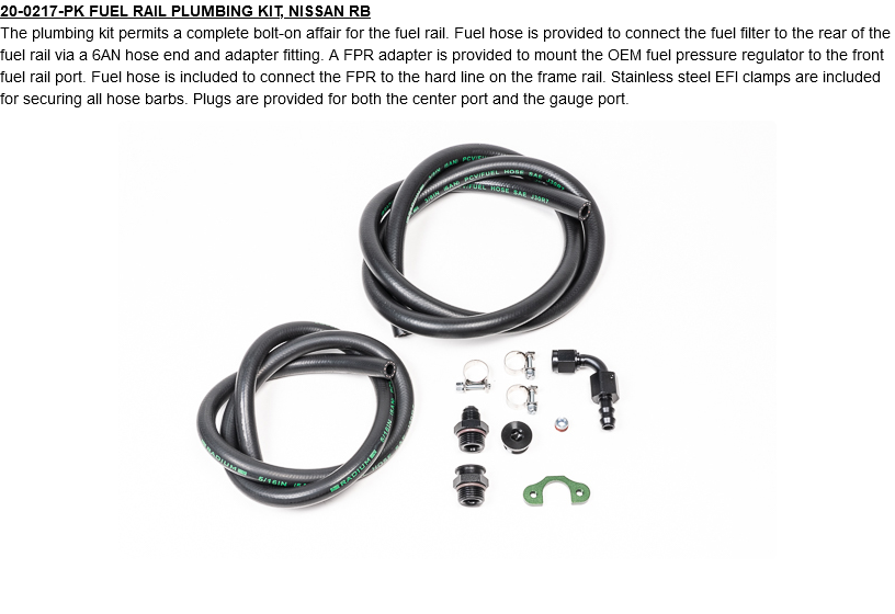 This plumbing kit allows easy hook-up of the Radium fuel rail for the Nissan RB26DETT engine.