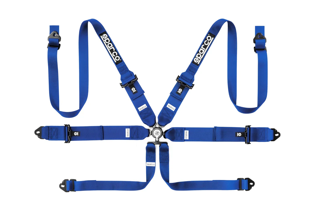 Sparco 6pt FIA Seat Belt Harness Steel 3in to 2in Camlock - Blue